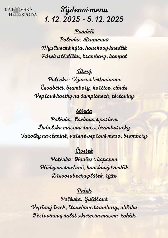 Kájovská hospoda je penzion s restaurací nacházející se v Kájově, 4 km od Českého Krumlova. Restaurace se salonkem nabízí domácí stravování, svou polohou je vhodná i pro pořádání různých oslav. Máme pro Vás připraveno 5 pokojů, dvou až čtyřlůžkových. Všechny pokoje mají vlastní sociální zařízení a jsou nekuřácké. Hosté mohou využívat vybavenou kuchyňku, pračku a žehlící prkno s žehličkou. V celé budově je WIFI zdarma. Návštěvníkům slouží bezplatné parkoviště u penzionu a úschovna kol.